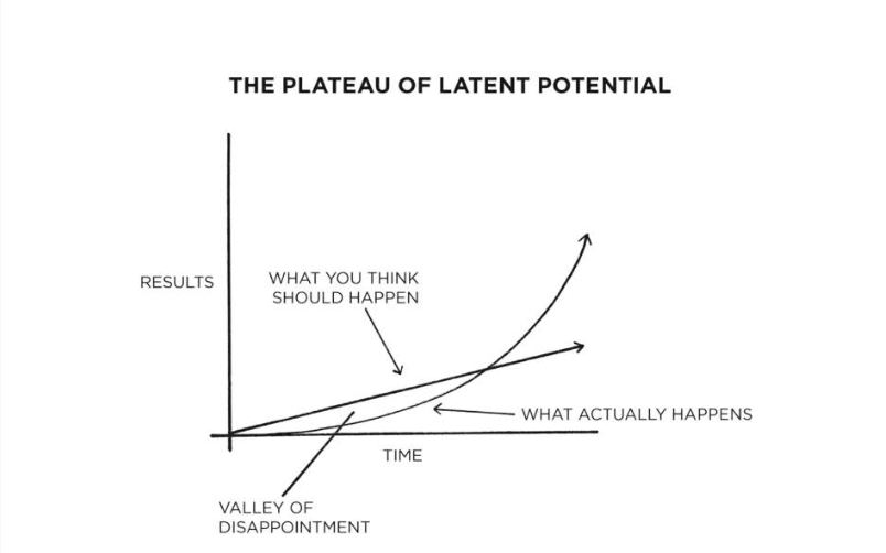The Plateau of Latent Potential is that flat line where results haven't caught up to effort yet.