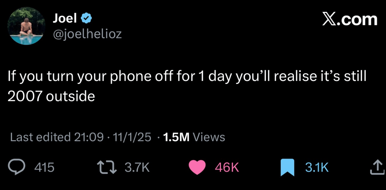 Put your phone down, turn your screens off, you’ll realise that the real world is not as chaotic as your controlled devices decide to show you.